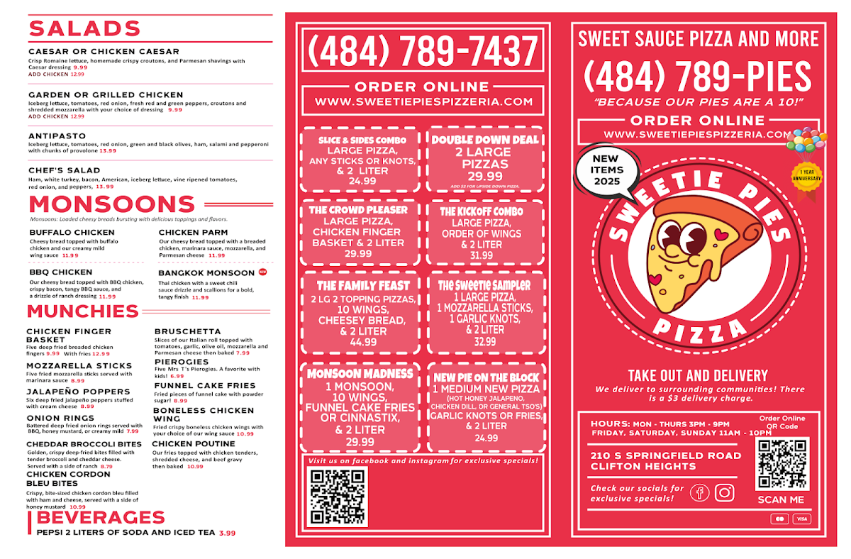 Whether you're a fan of classic flavors or adventurous combinations, Sweetie Pies Pizza promises a delightful culinary journey that is definitely worth a try!